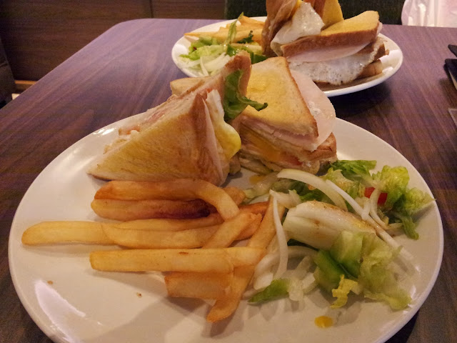 As stated by its name "Triple Decker", the sandwiches consists of three layers with generous fillings! From left to right, the first layer consists of a nicely smoked chicken breast, 2nd layer came with tomato slices and a sunny egg and finally the third layer with a piece of ham. I love the smoked chicken breast very much! Oh I myself is a huge fans of chicken breast so, this dish just got me!